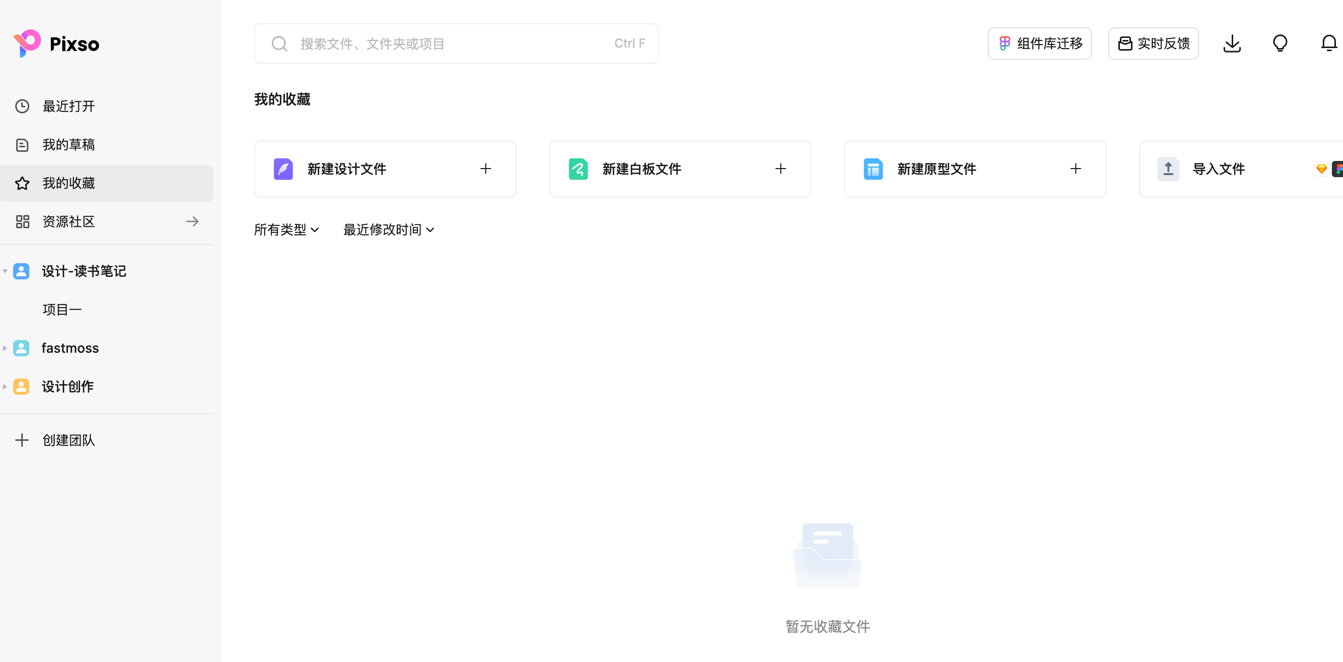 通过Pixso官网的首页,点击“在线使用”按钮,登录Pixso账号进入Pixso工作台页面,在该页面点击“新建设计文件”如下图所示,新建一个空白的设计文件。