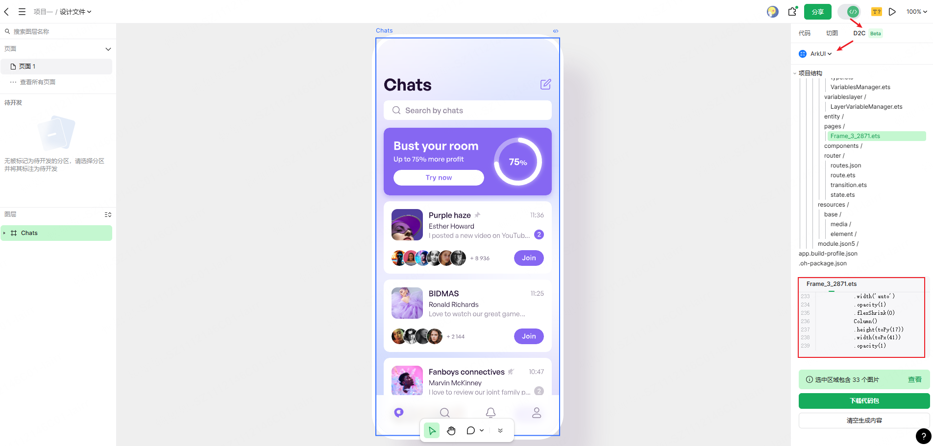 - 实测反馈:基本可以实现“一站式”产出。 Pixso 会自动解析图层结构,生成符合 ArkTS 语法规范的鸿蒙原生代码。