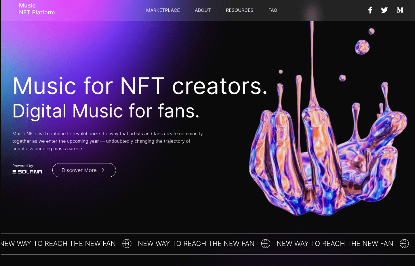 这个音乐NFT网站的水平顶部导航栏样式,采用了毛玻璃的效果,在这种大面积的黑色背景与紫色渐变背景结合的场景下,看起来非常极具吸引力。对于那些需要在自己网站追求视觉化与个性化的小伙伴,可以考虑采用这种导航样式进行设计。
